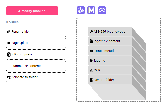 ReN3 can handle images, audio, video, PDF, the Microsoft Office suite of extensions, Autocad and even 3D formats. Glean data from more than 80 different file formats for Generative AI to work with. Automatically categorize documents for what they are - whether it's a national ID card or an invoice or a memo, and extract summaries and metadata from the content of these files using AI